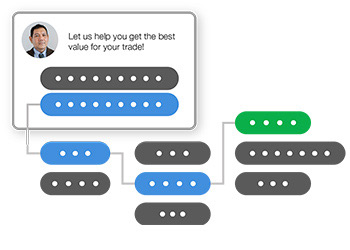 Using natural language responses, move clients through critical steps of the car-buying journey, including scheduling a test drive, valuing a trade-in, pre-qualifying for credit, and getting an e-price.
